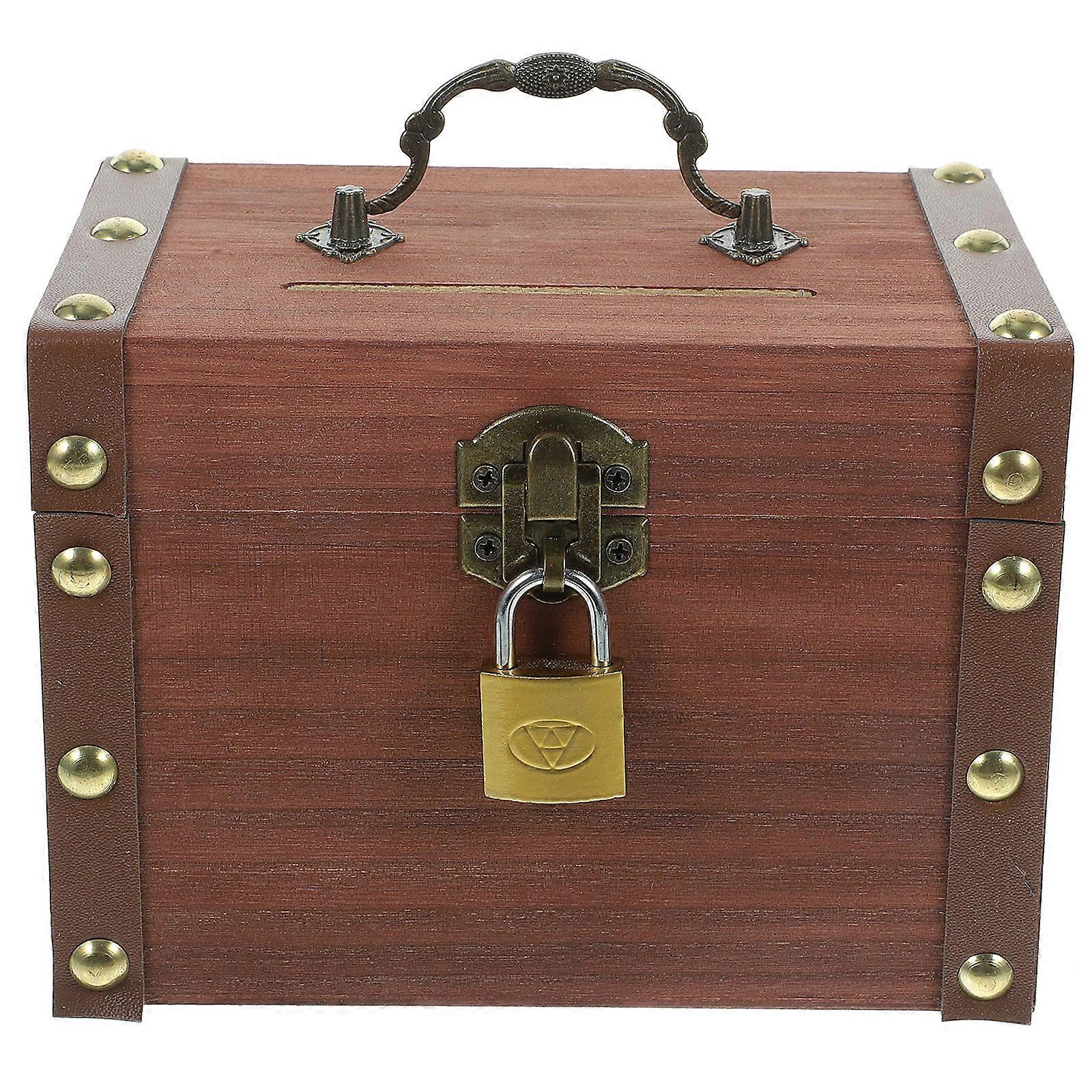 Wooden Piggy Bank Treasure Chest Coin Storage Box Retro Style 15X11X10CM 1 Set