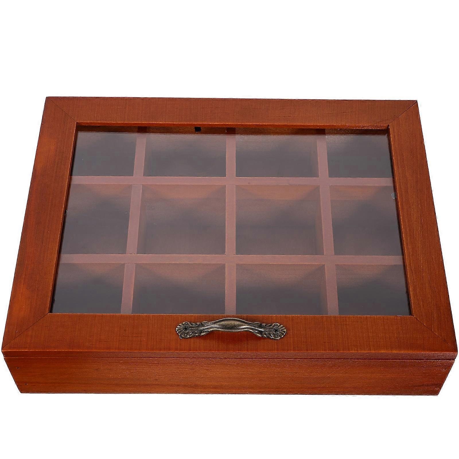 Tea Bag Holder Brown Wood Storage Box for Tea Organizing 12-Compartment