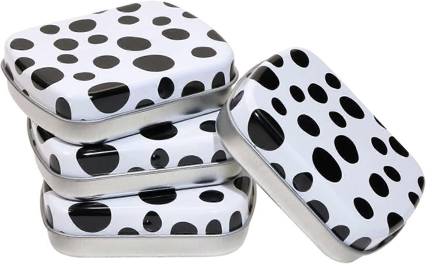 4Pcs Small Metal Portable Storage Box, Mini Rectangle Empty Hinged Tins with Lid(Black & White)