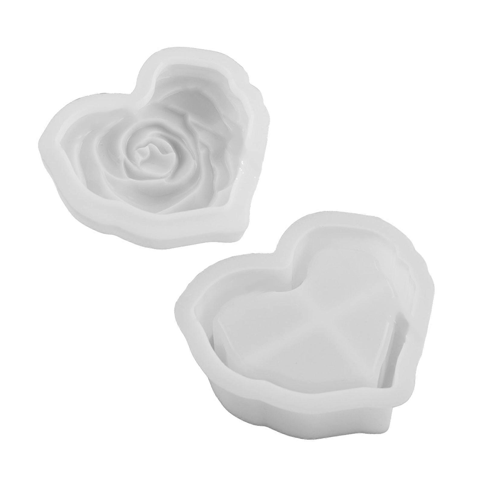 Storage Box Silicone Mold Rose Heart Jewelry Case Epoxys Resins Mold Aromatherapys Gypsum Candle Jar Mold Home Decorations Multicolor
