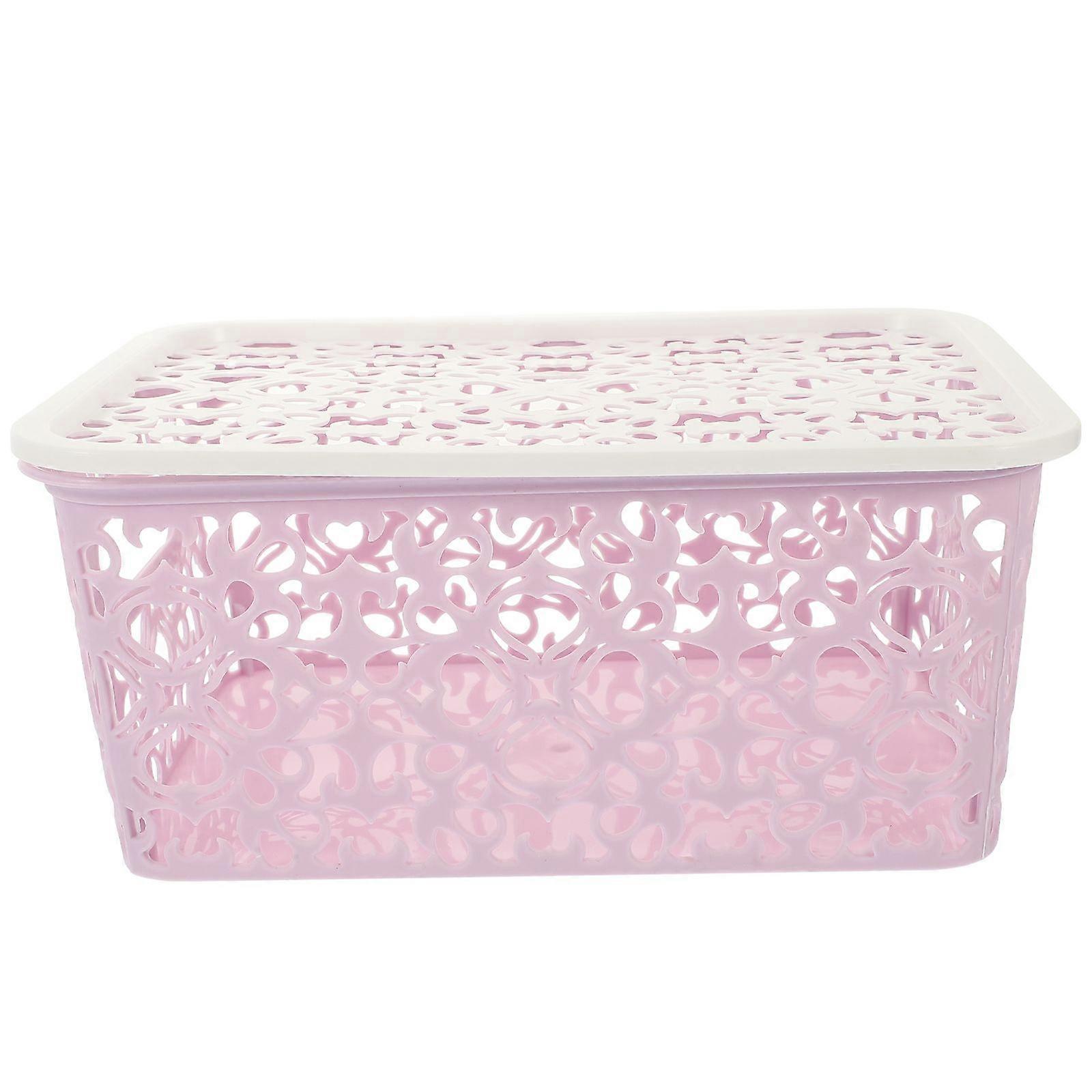 Stackable Plastic Storage Box Hollow Out Delicate Retro Pattern Storage Basket with Lid for Clothes Cosmetics Papers Toys - Small Size(Purple)