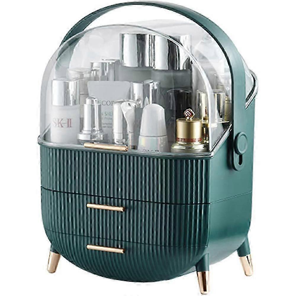 Makeup, waterproof and dustproof cosmetic storage box with full opening lid and drawer, portable handle skin care stand 2025