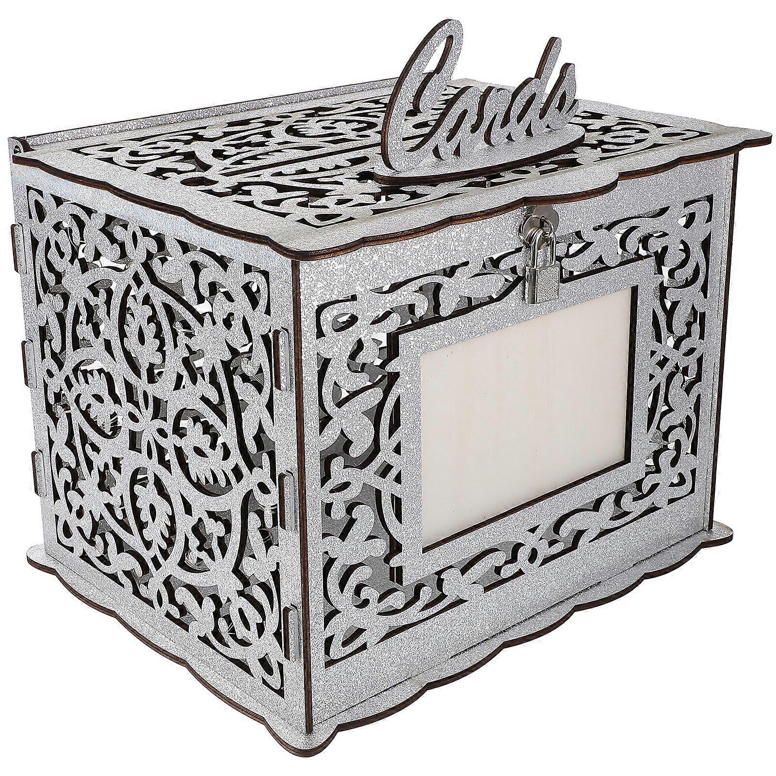Description Concerned about the safety of the cards and gifts at your wedding or event? This wood case will be a good choice for you.Made of wood with elegant hollow design, it is crafted to complement modern wedding looks. The unique decor of your gift table, or let the statement look of the box stand on its own. Features -Color:As Shown -Material:Wood -Size:30.00X24.00X22.50cm/11.79X9.43X8.84in -Diy wooden wedding card box with a rustic and natural design. -The card box provides ample storage space for wedding cards, money, and small gifts. -Features a unique photo frame design, allowing you to display your favorite wedding photos. -This card box is perfect for collecting greetings and cash gifts during your special day. -Can also be used as a versatile decoration for various parties and events, adding a touch of charm to any tabletop. Packing list1 x box