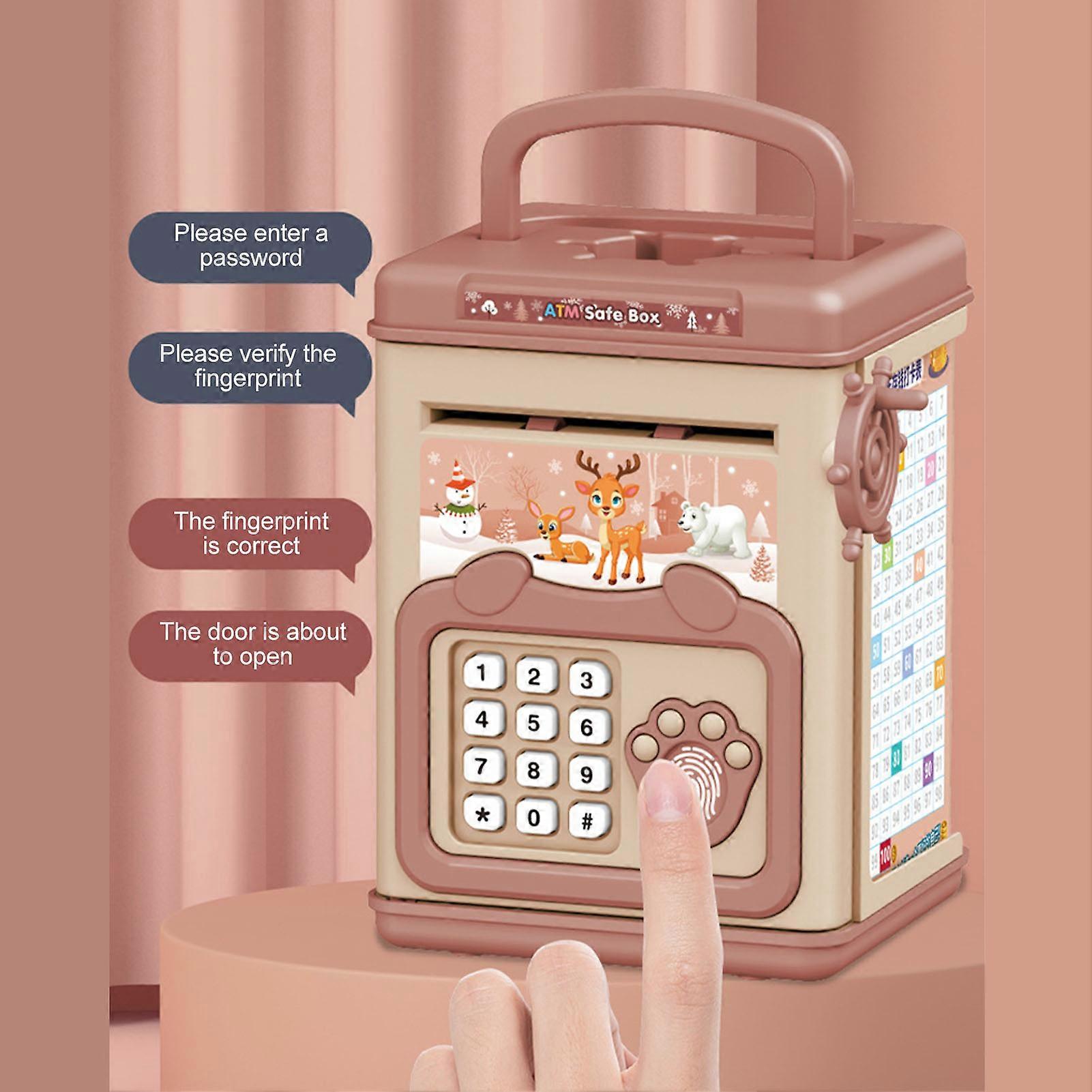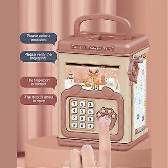 Kids Money Saving Box Fingerprint Safe Password Cartoon Manual Educational Electronic Coin Bank Pink
