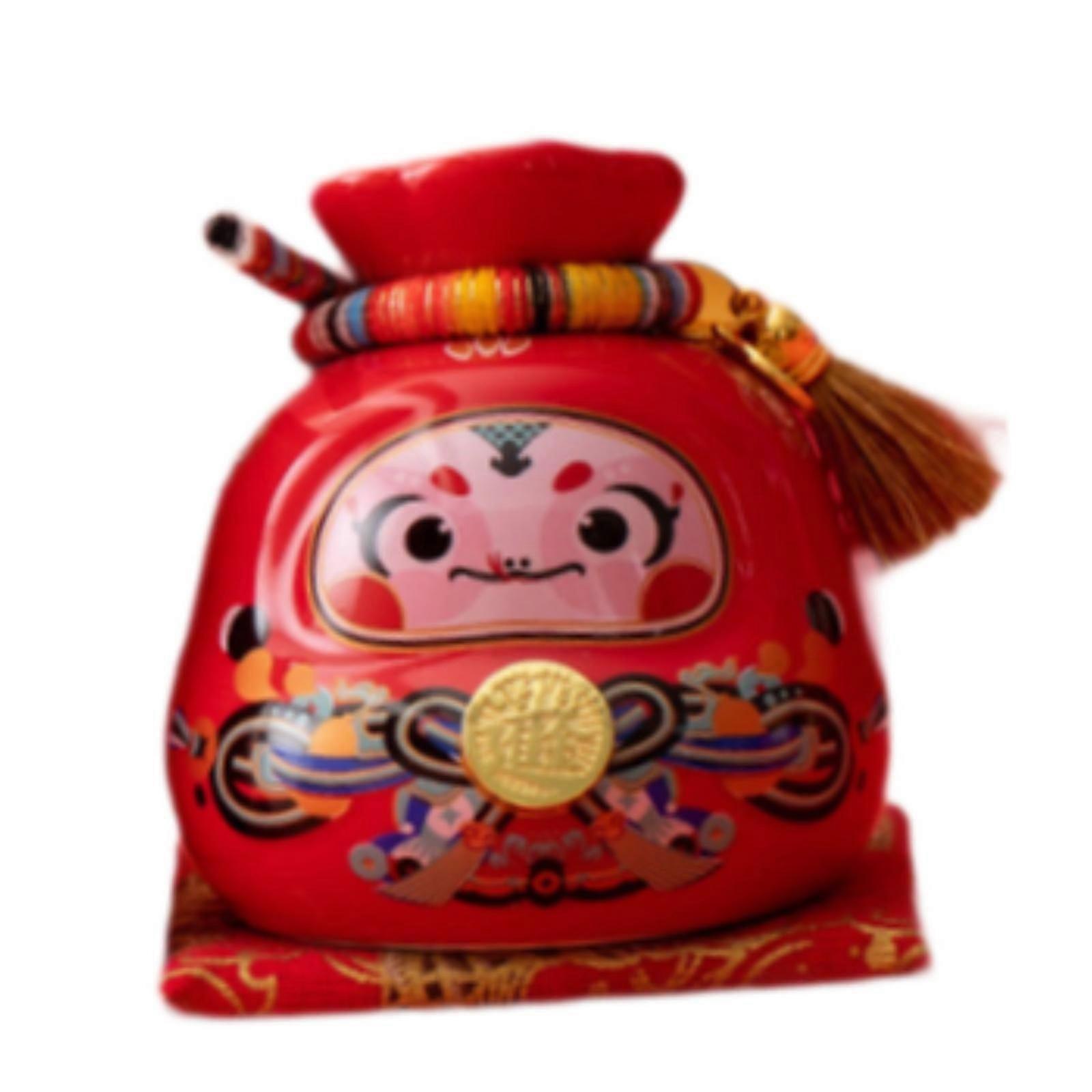 Money Saving Box Ceramic Figurine Container Living Room Lucky Bag Piggy Bank Red