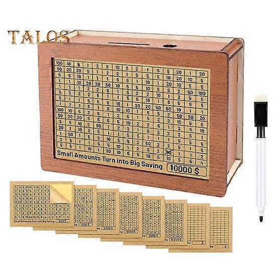 Wooden Money Box with 8 Target Number Stickers Marker Pen USD Piggy Bank Coin Cash Container Kids Adults Money Saving Challenge Case Jar