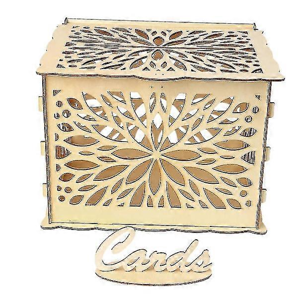 Wooden Wedding Card Box with Lock and Card Sign Rustic Hollow Gift Card Holder for Reception Wedding Anniversary Party