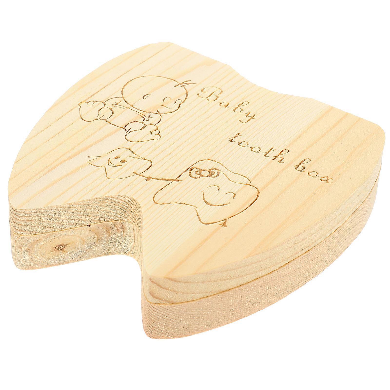 Light Brown Wooden Baby Teeth Keepsake Box for Saving 3Pcs Kid Tooth Holder