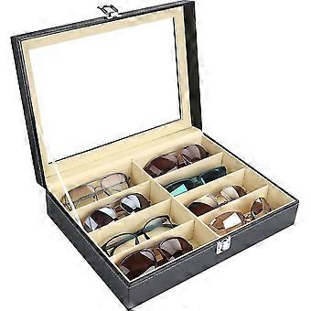 Faux Leather Sunglasses Box - 8 Compartments - Black Lockable Case For Displaying And Stor