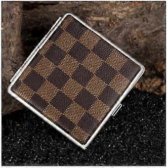 Compact Leather Cigarette Case for 20 Filter Cigarettes (Checkered Iron Clip)2pcs