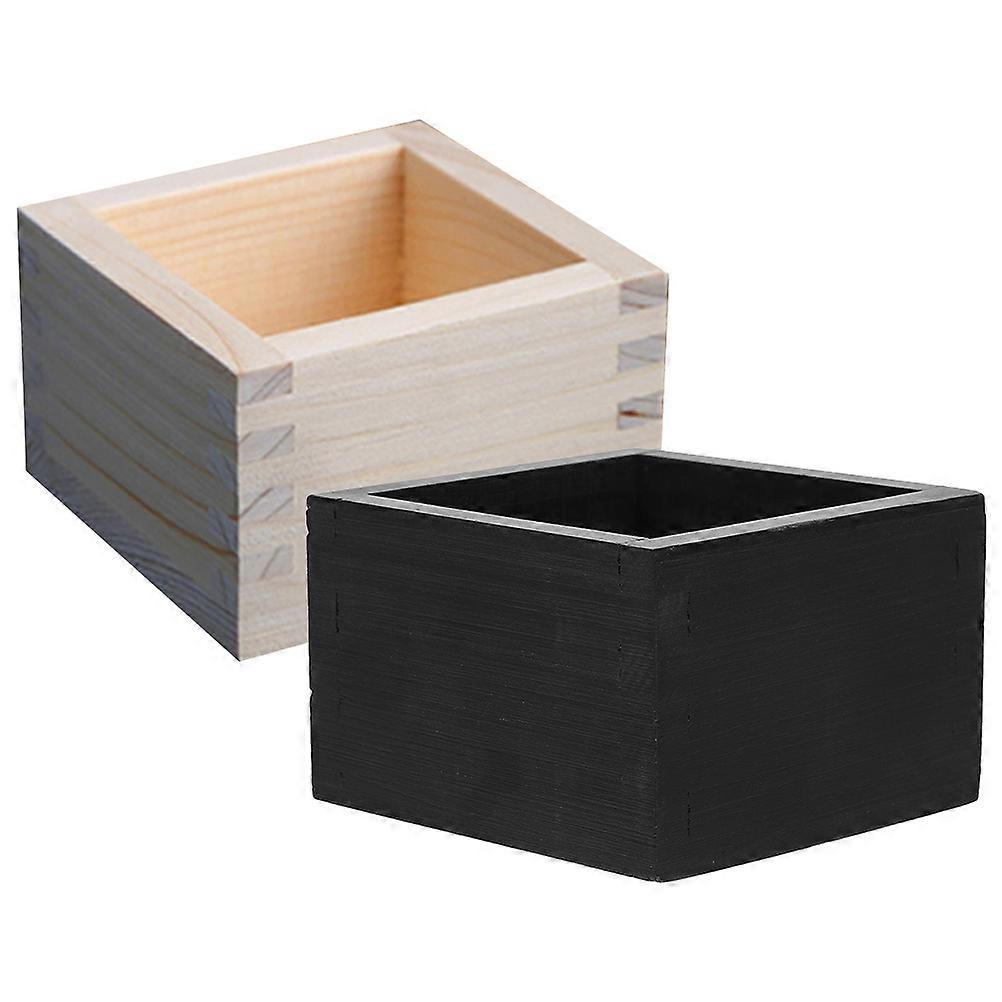 Square Wood Box Traditional Japanese Home Use 8.5x8.5cm Storage 2Pack