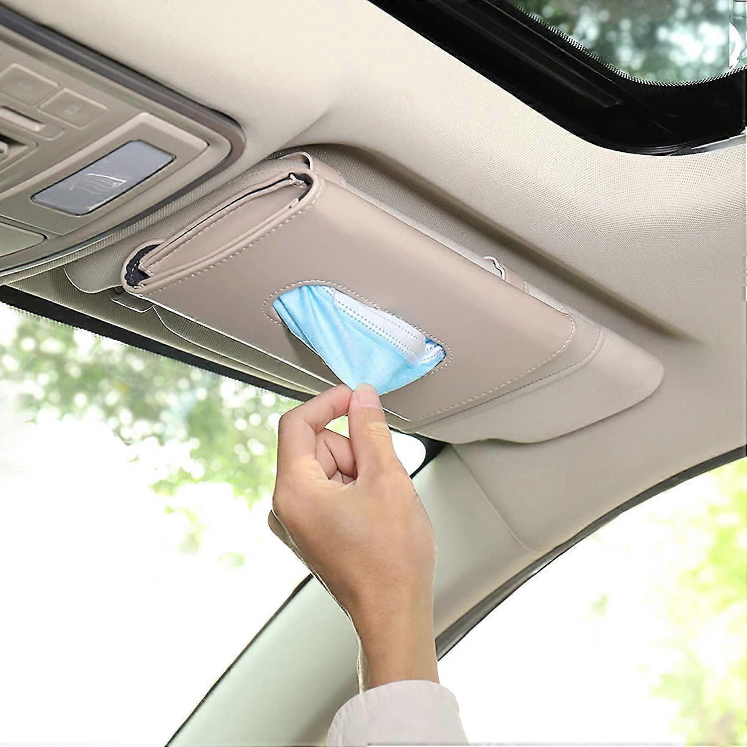 Car Visor Tissue Box, Leather Tissue Holder for Car Visor Accessories, Leather Tissue Storage Container, Beige,2024 Ping