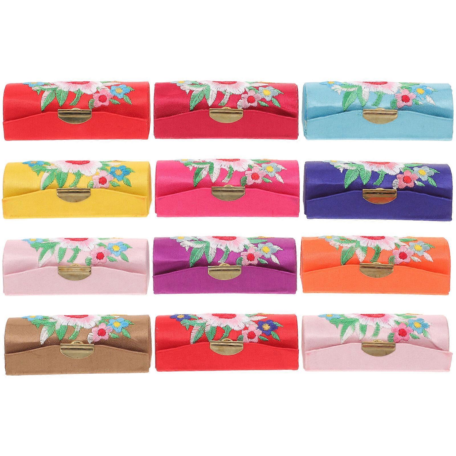 12Pcs Cloth Lipstick Box Portable Lip Balm Box Vintage Lipstick Storage Box Lipstick Cases