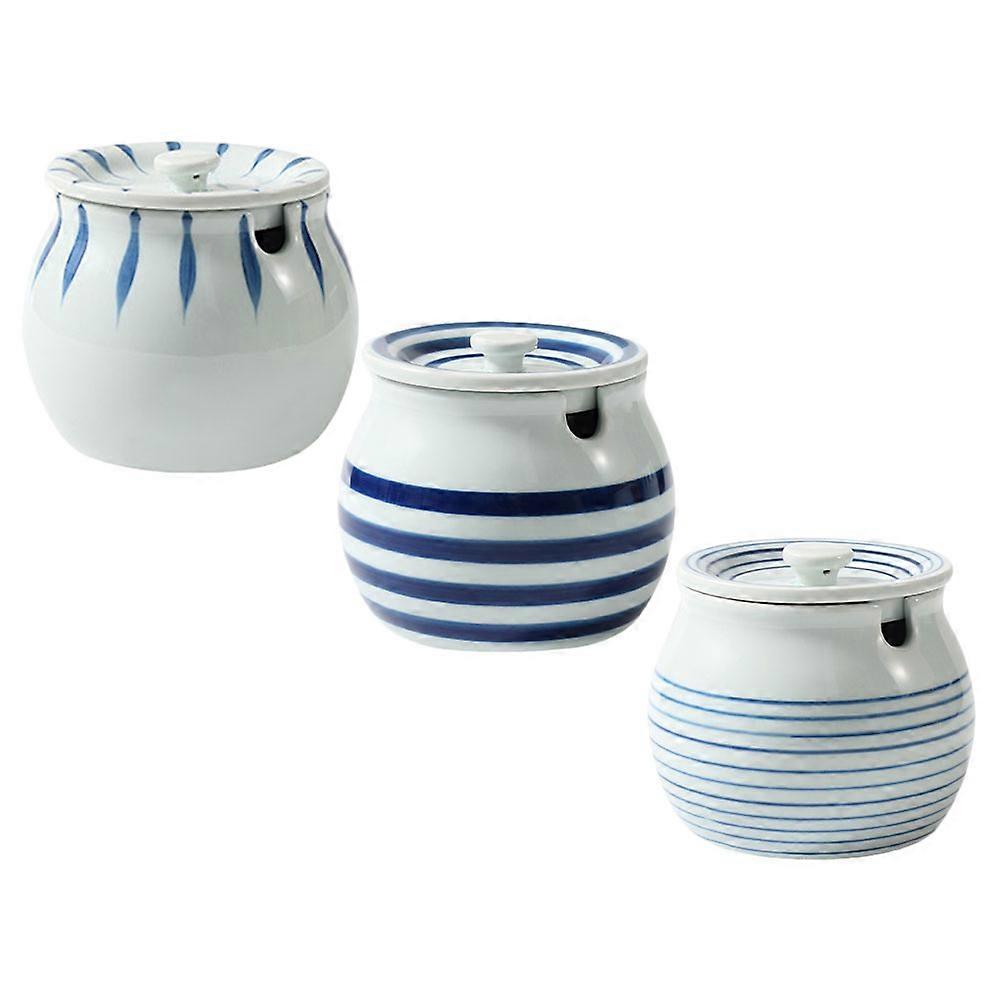 Kitchen Seasoning Box Food-Grade Certified Ceramic Jar for Salt Home Use 3 Sets 7.5X7CM 200ml