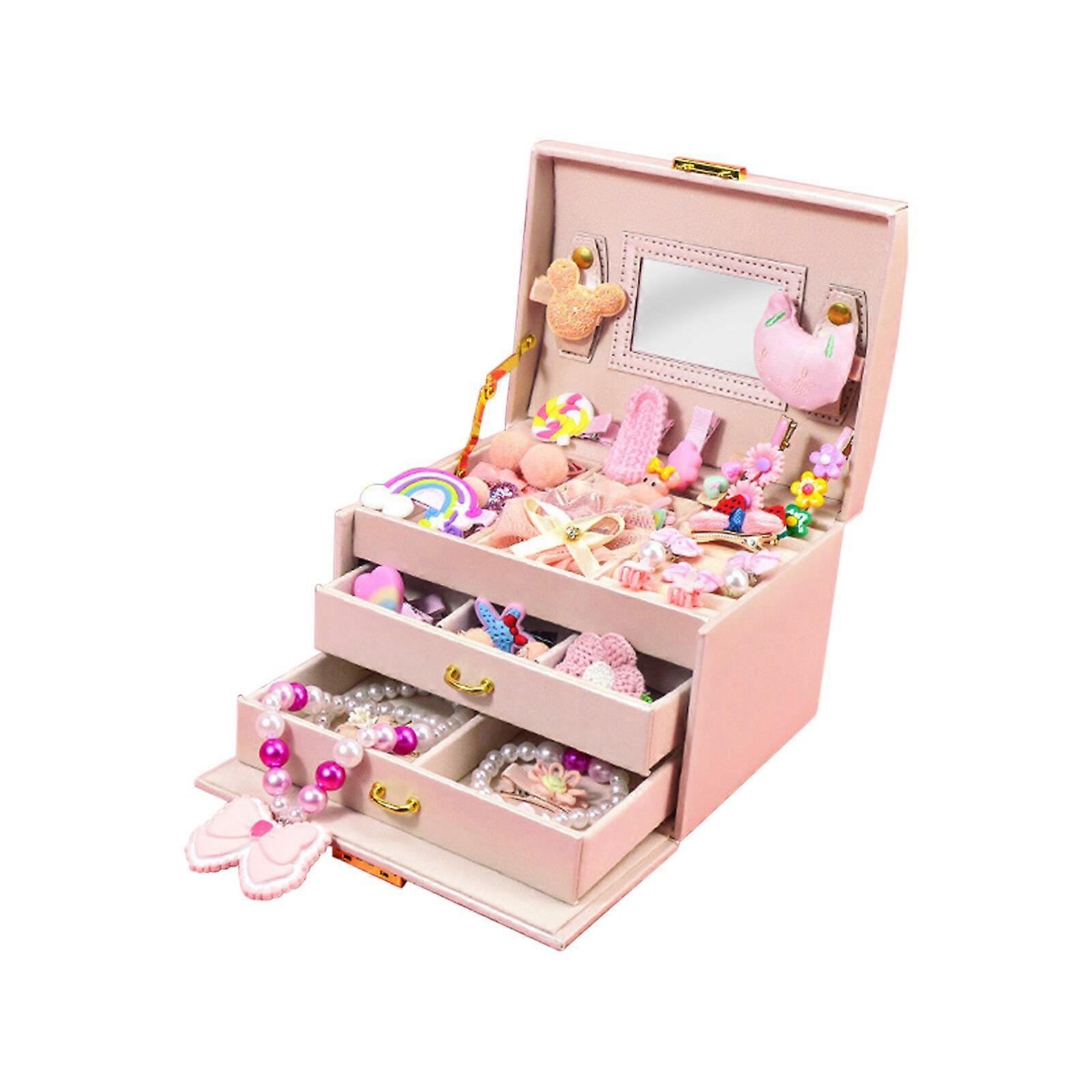 Kids Jewelry Box with 21/32/37 Pieces Set, Pink PU Leather Case for Earrings Bracelets Rings Hair Accessories, Portable Travel Jewelry Organizer