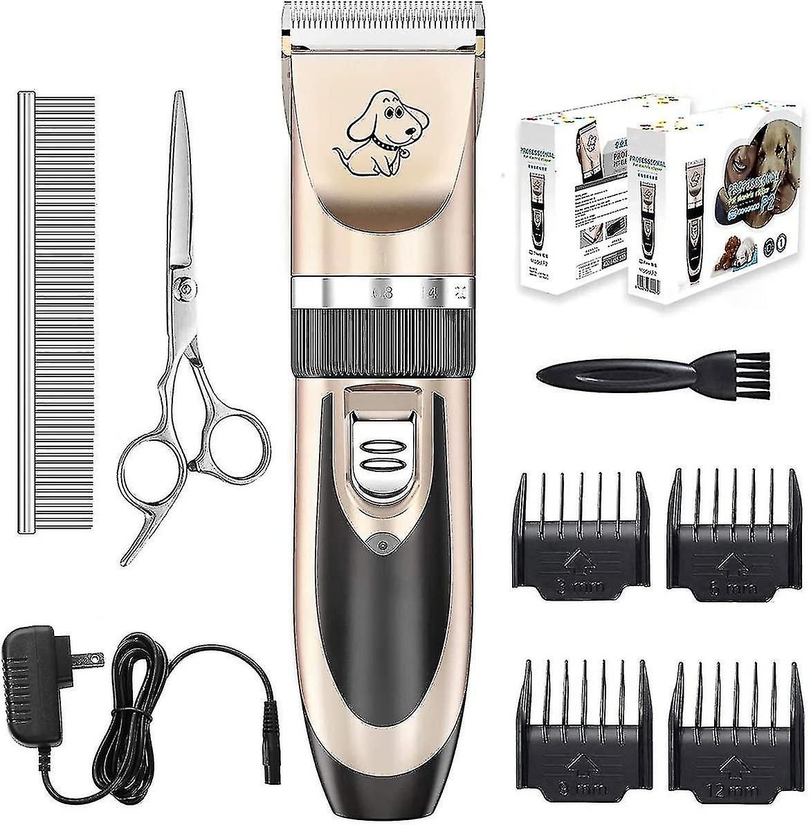 Dog Clippers, Low Noise Rechargeable Cordless Pet Dogs And Cats Electric Grooming Clippers Kit With Shears And Comb (gold+black)