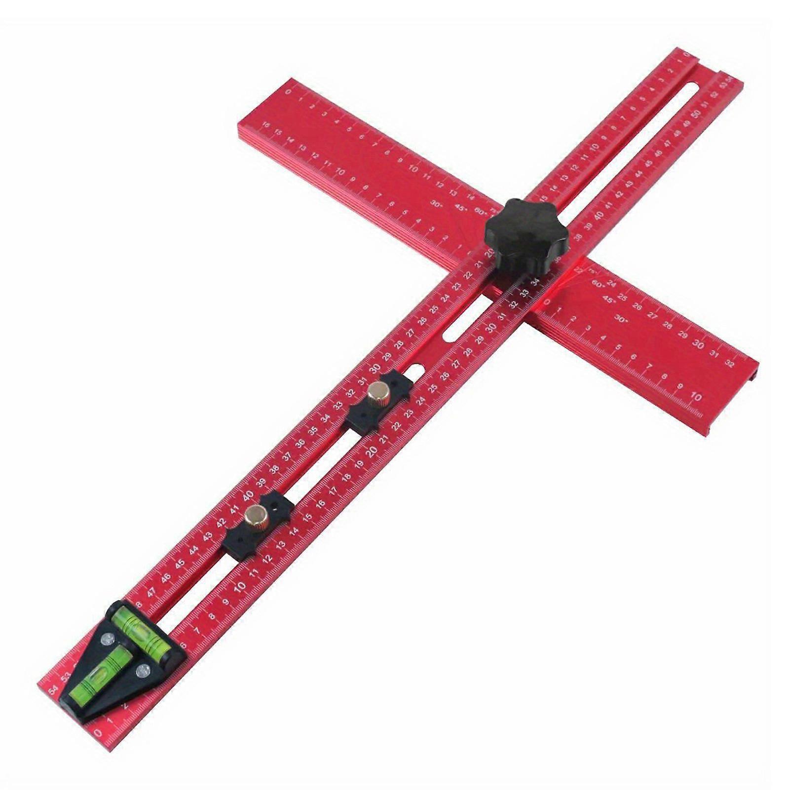 Drilling Positioning Ruler Multi-Angle Measuring Ruler Aluminum Alloy T-Shape Ruler Woodworking Scribing Marking Ruler with 2 Positioning Blocks for