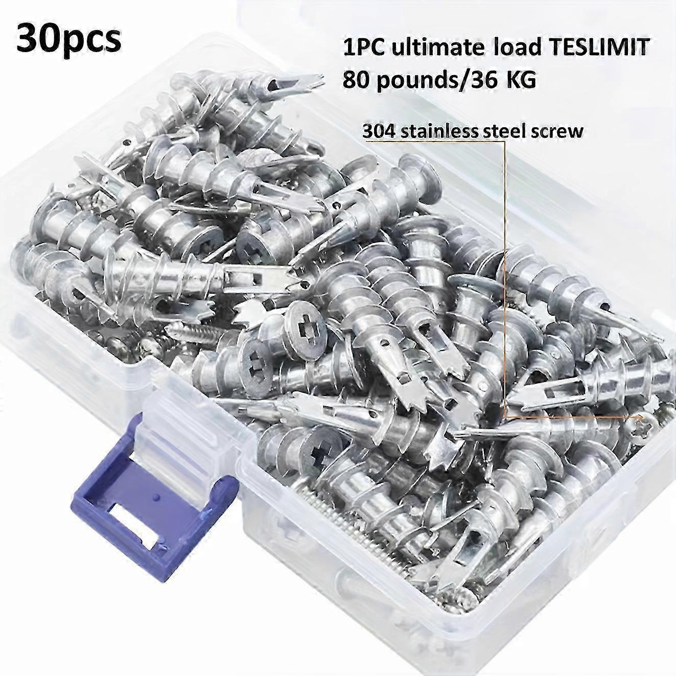 30/50pcs Zinc Self-drilling With Screws Kit, 25/50 Heavy Duty Metal Wall Anchors And 25/508 X 1.38inch 304 Stainless Steel Screws