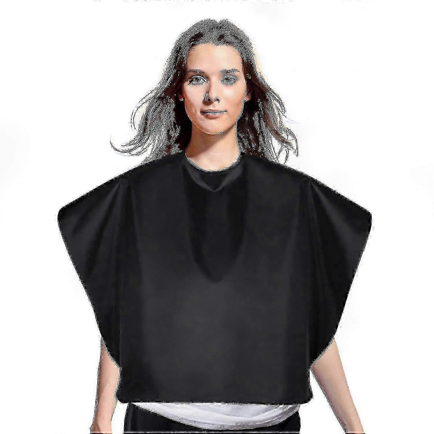 Waterproof Nylon Salon Cape - Lightweight Hair Coloring Smock For Makeup Artists Clients (Black, Short Cut Comb-Out Design)_mm2 -CN-WR