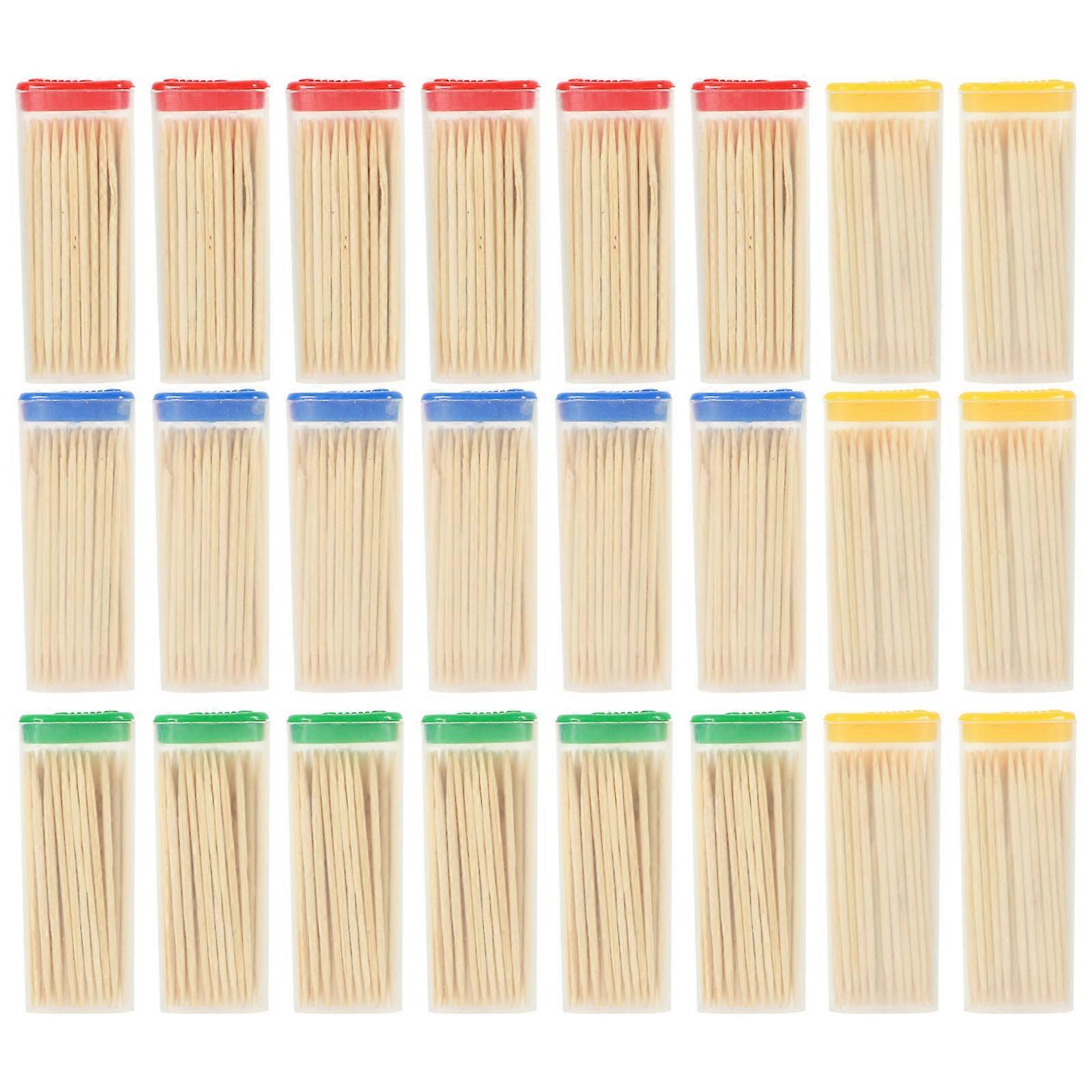Portable Bamboo Toothpicks 24 Boxes, Mixed Colors, Double Ended Food Picks for Parties, Fruit, Desserts & Teeth Cleaning Restaurant Supplies
