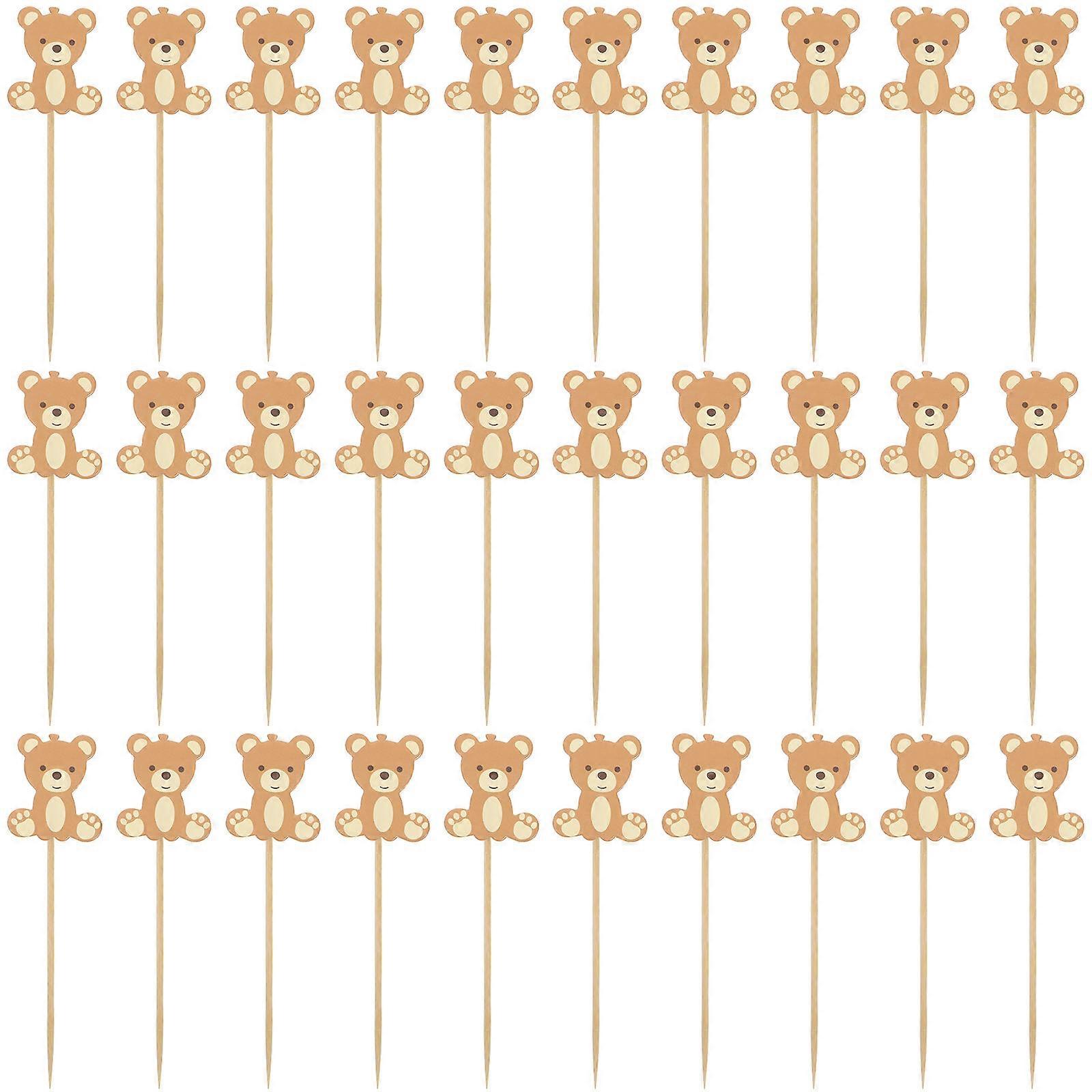 Bear Cake Toothpicks For Boys Girls Baby Shower Birthday Party Decorations Light Brown 12.30X3.30X0.30CM 50Pcs