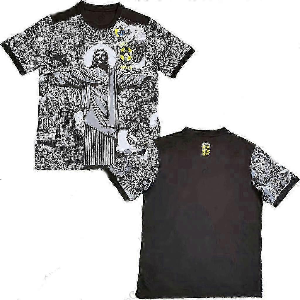 Summer Football Training Top Brazil Special Edition Jesus Black Grey Football Jersey Adult Children Outdoor Quick-drying Top 6XL