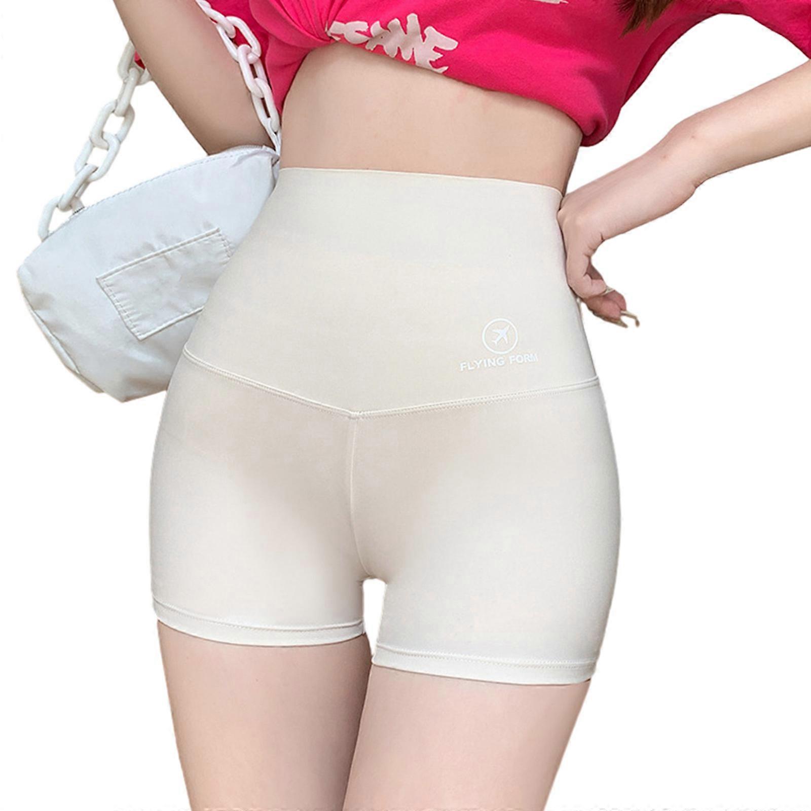Summer Elastic Belly Pant Thin Breathable Bottom Wearing Solid Color Yoga Running Workout Shorts for Women Girl Daily White L