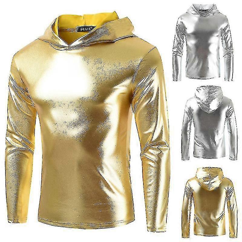 Summer Men's Long-sleeved Hooded Shiny Men's T-shirt Nightclub Hooded