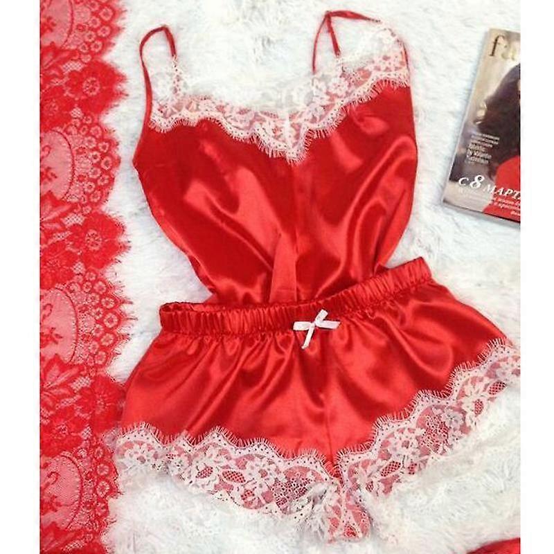 Summer Women's Solid Color Sexy Lingerie Lace Pajamas Homewear Set