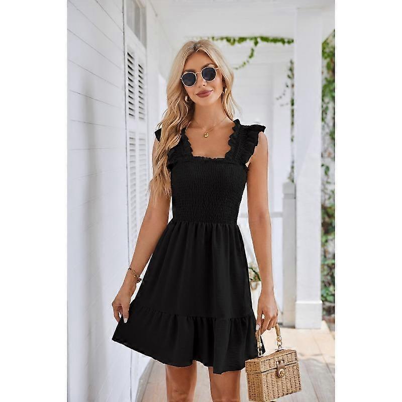 Pattern: Solid color Dress type: Sundress Waist shape: Elastic waist Style type: Japanese and Korean casual Combination form: single piece Skirt length: Short skirt Collar type: square collar Popular element: Wood ear edge Fabric: Polyester Style: Casual Process: pleating Label:Yes Washing Care:Hand washable Size Bust Length Waist S 71cm 88cm 66cm M 76cm 89.5cm 71cm L 81cm 91cm 76cm XL 86cm 92.5cm 81cm Note: Manual measurement may exist 1-3cm difference. Due to the light and screen setting difference, the item's color may be slightly different from the pictures. Package specification: 1*Dress