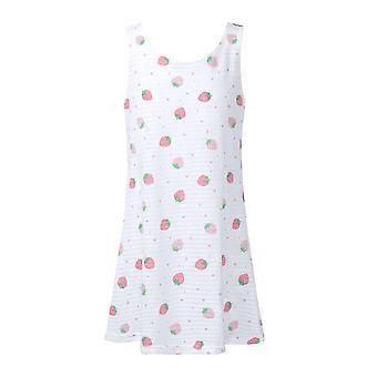 קיץ בנות שמלת פיג'מה בגדי שינה ילדים כותנה בגדי שינה כותנות לילה צווארון עגול ללא שרוולים דפוס תות ואותיות שמלת שינה