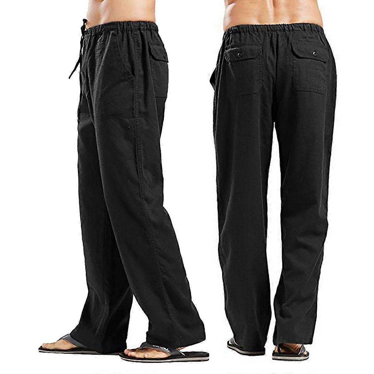 Summer Men Solid Color Linen Multi-pocket Straight Casual Pants Plus Large Size Breathable Comfortable Drawstring Loose Trousers