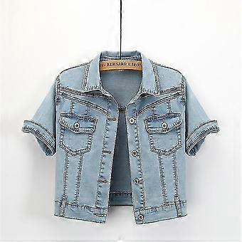 קיץ ג'ינס ז'קט נשים קצר ג'ין ז'קט ג'ינס קוריאני אופנה שרוולים קצרים מעיל נקבה בגדים חדשים וסט ג'ינס Femme Xl