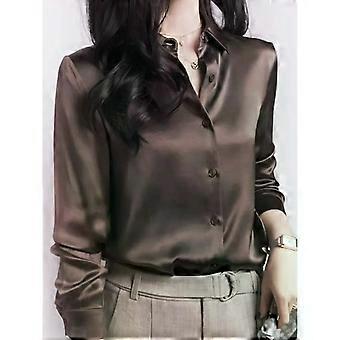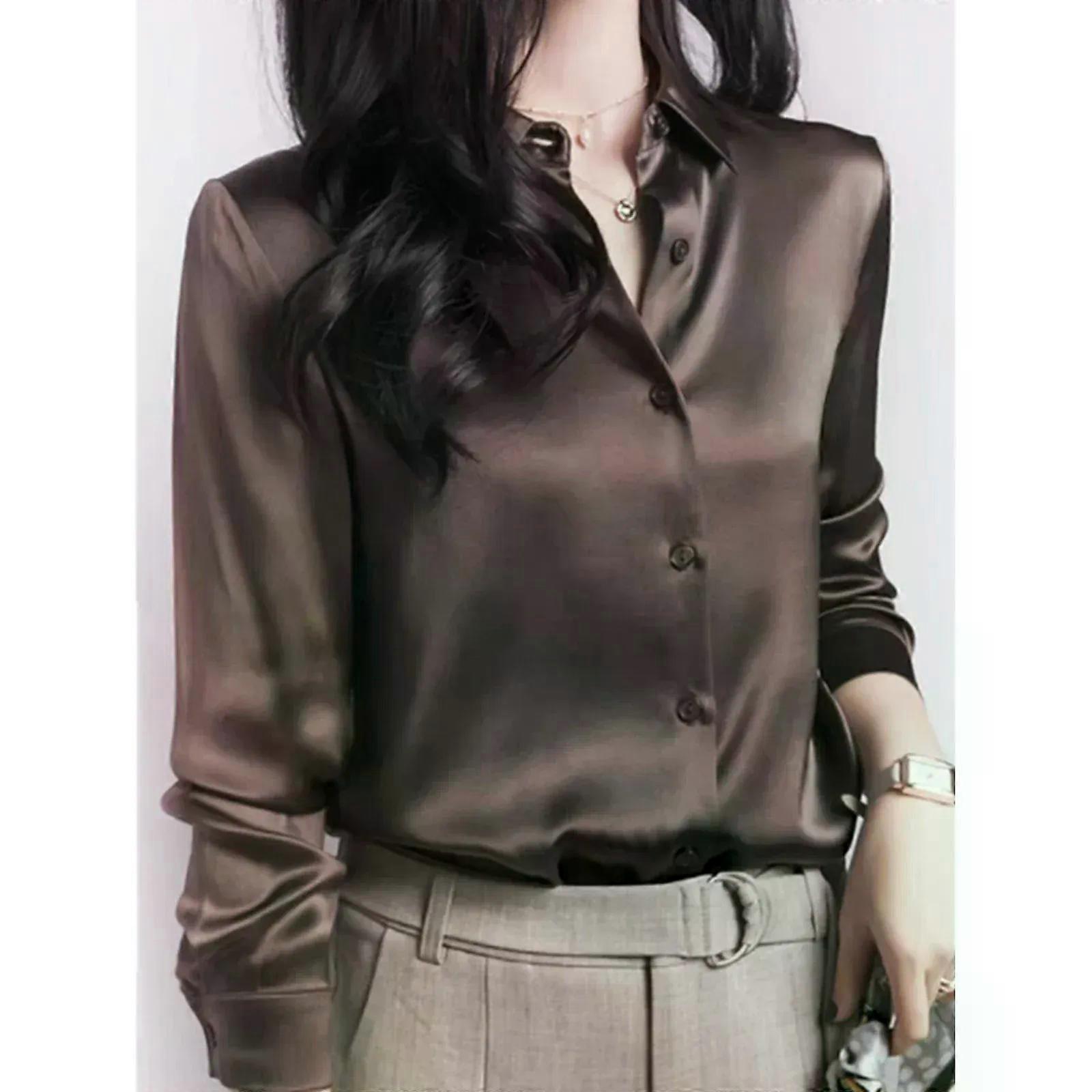 Summer Trend Fashion Women's Casual Elegant Satin Long Sleeved Shirt Office Women's Shirts And Blouses Slim Femal Clothes