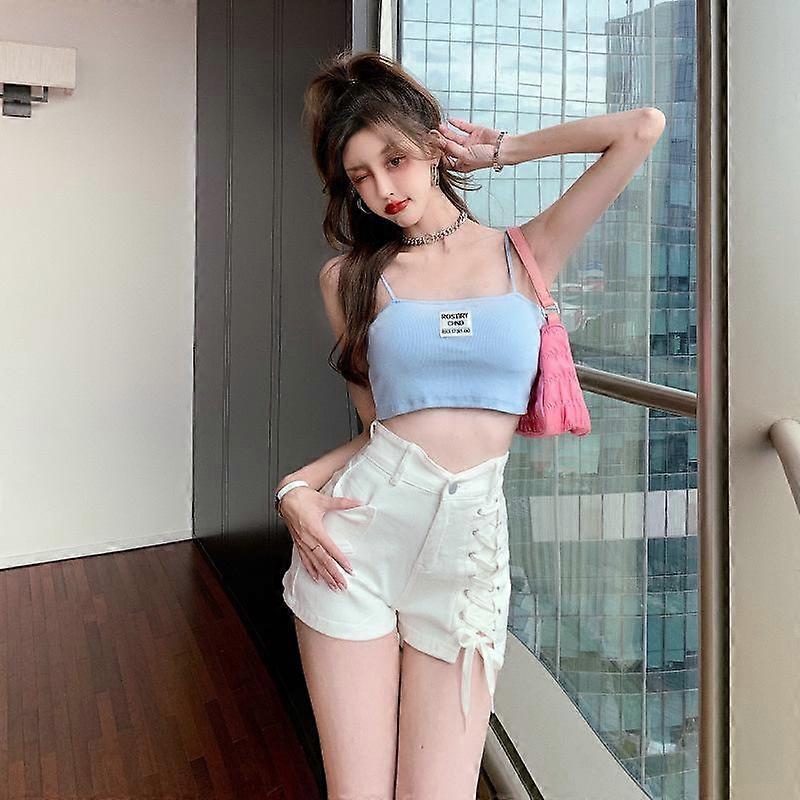 Summer Sweet Bandage Denim Shorts Women Korean Cute Chic High Waist Short Pants Kawaii Girls Harajuku Sexy Y2k Punk Jeans