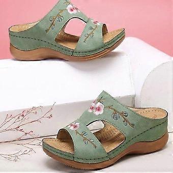 Summer Women Wedge Sandals Premium Orthopedic Open Toe Slipper Vintage Anti-slip Leather Casual Female Platform Embroidered shoes