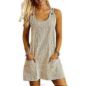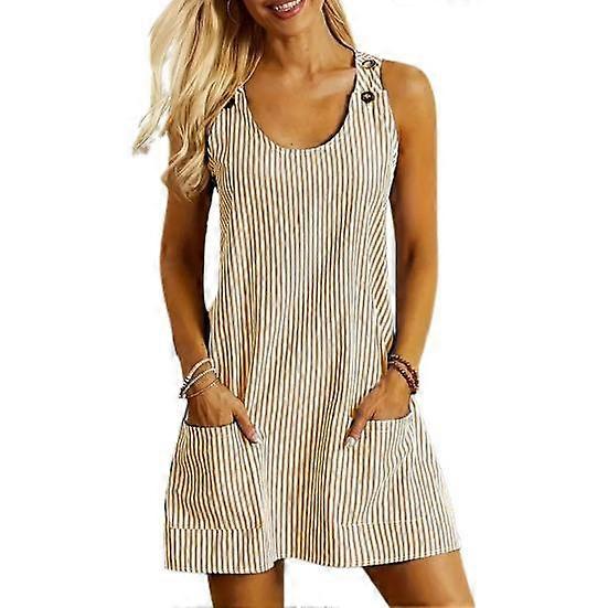 Summer Women Sundress O Neck Striped Print Sleeveless Pockets Loose Button Decor Casual Daily Wear Mini Dress Dating Vacation Short Dress