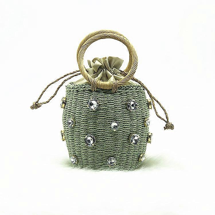 Summer Round Rattan Handmade diamond Pearl Bag Bohemian Leisure Straw Bag Bucket Knitting Shoulder Crossbody Beads Beach Bag
