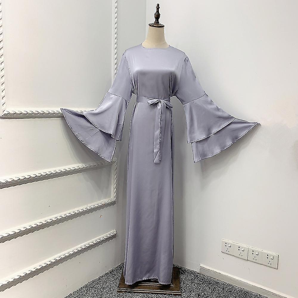 Summer Muslim Dress Thin Satin Flare Layered Sleeves Women Abaya Islamic Clothing Dubai Saudi Turkish Modest Casual Hijab Robe