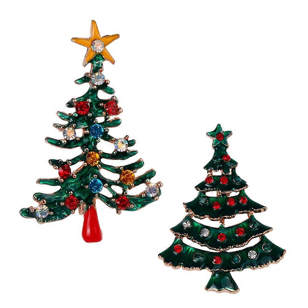 Festive Decorations Brooch Alloy Christmas Tree Shaped For Clothes Hat Scarf 2Pcs