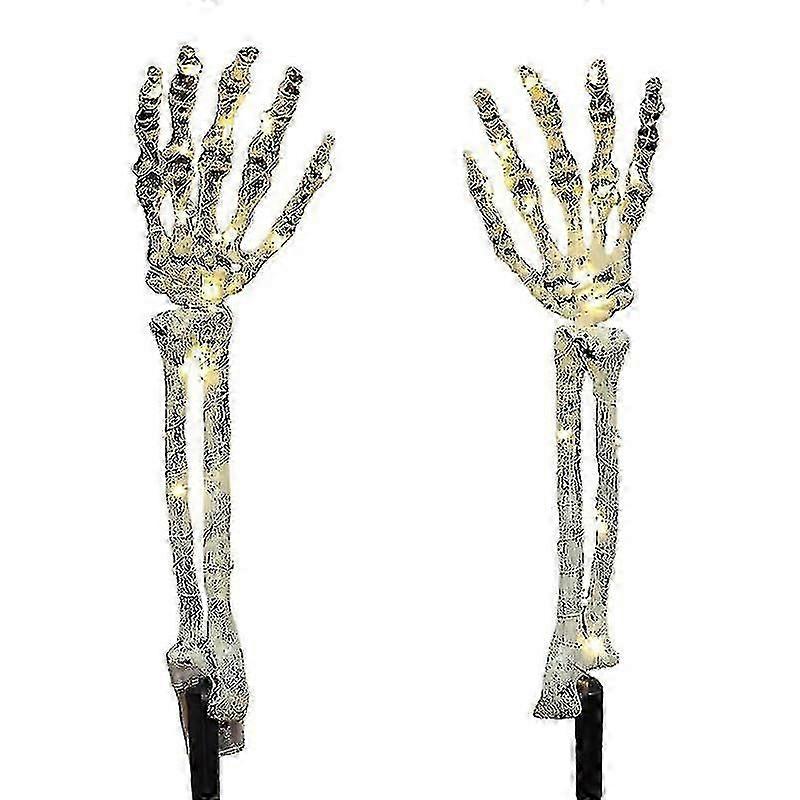 Halloween Outdoor Decorations, Lighted Skeleton Arms Stakes With 40 Led Warm White Lights, Waterproof Battery Operated With Timer, Halloween Law Bd
