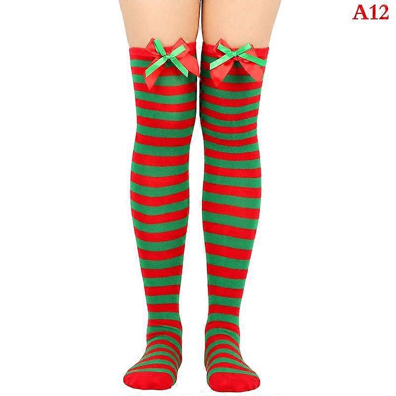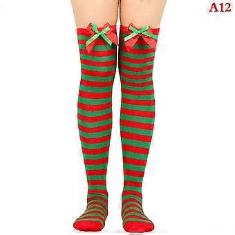 Christmas Ornaments Socks Striped Long Stockings Christmas Decorations High Socks for Girls Striped Knee Socks