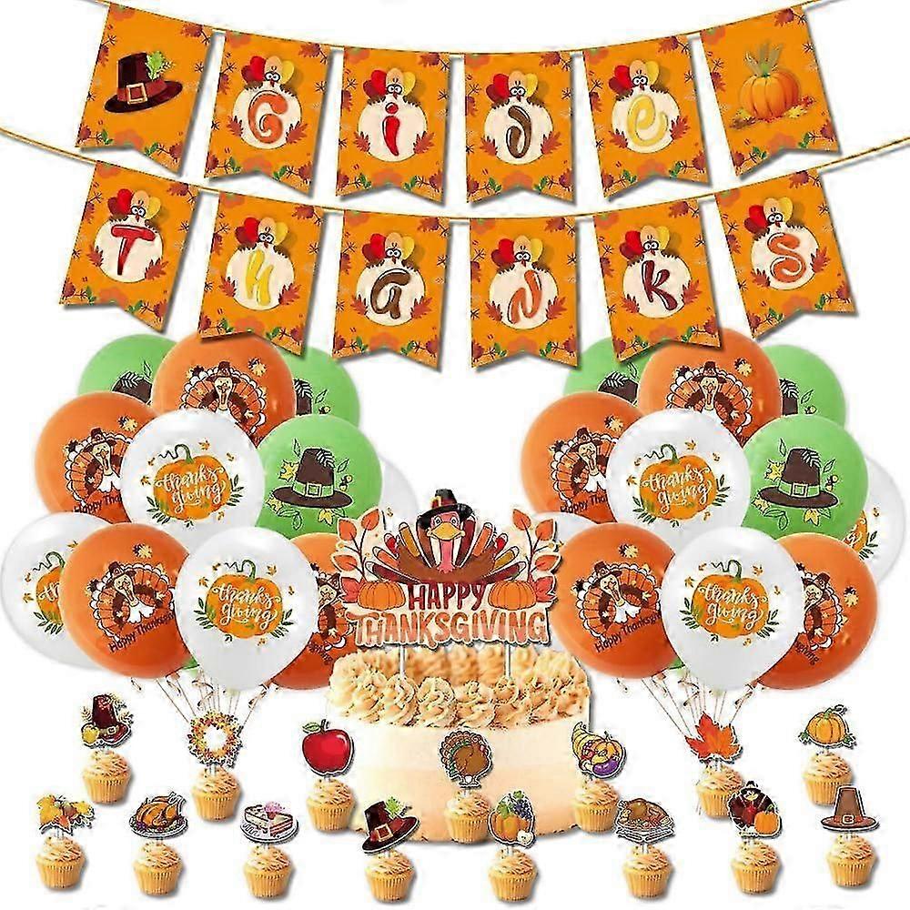 Thanksgiving Party Decorations, GIVE THANKS Hanging Banner, Maple Leaf Turkey Pumpkin Autumn Latex Balloons Cake Cupcake Toppers