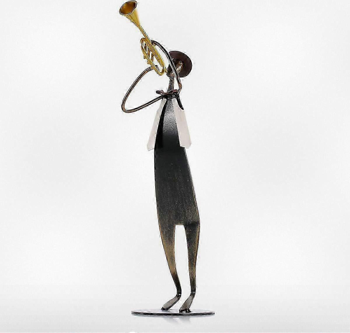 Handmade Iron Ornaments Sculpture of a Musician Playing Trumpet for Living Room Accessories, Suitable for Drum Lovers