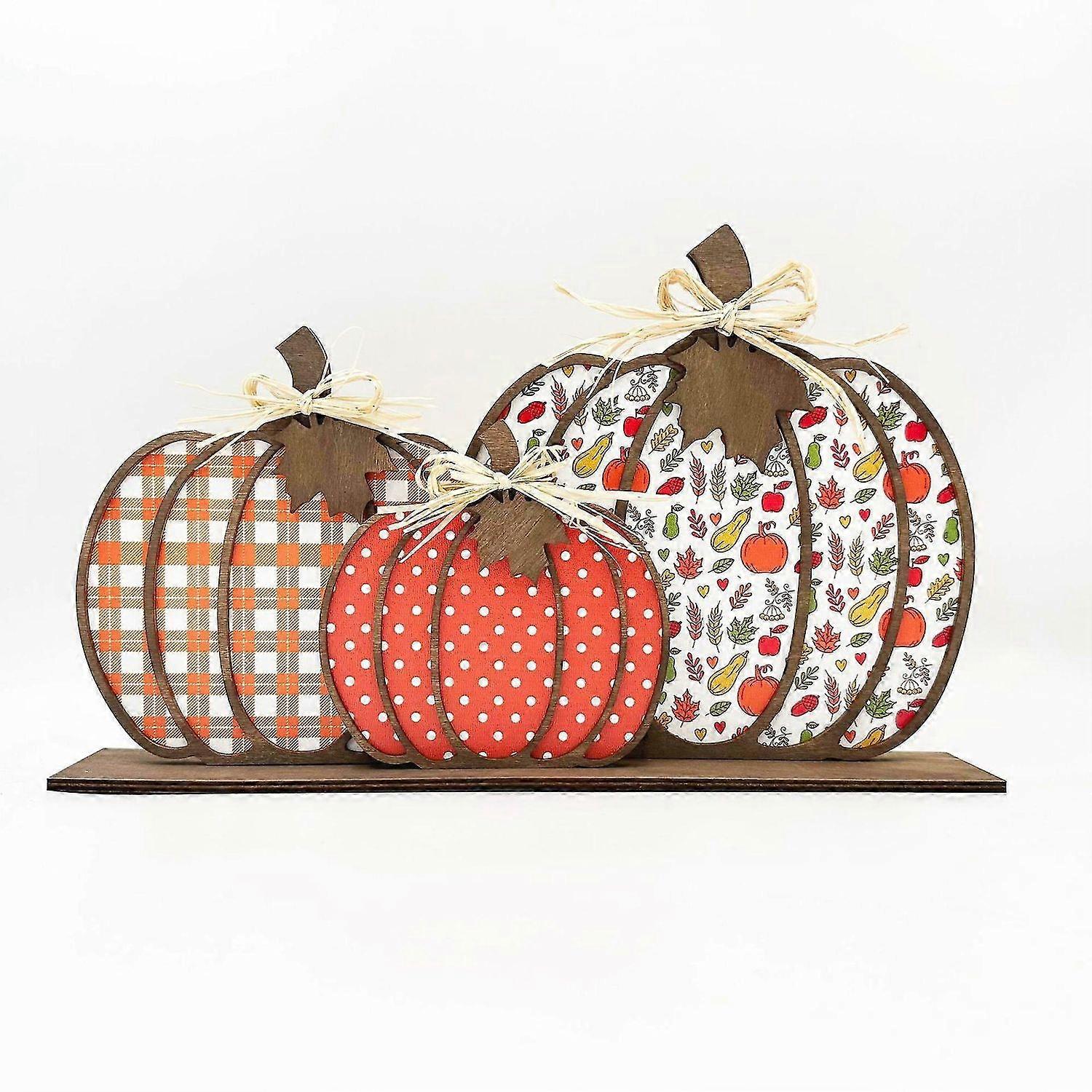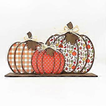 Wooden Pumpkin Ornaments, Thanksgiving Halloween Pumpkin Decoration Table Block Autumn Checked Woode