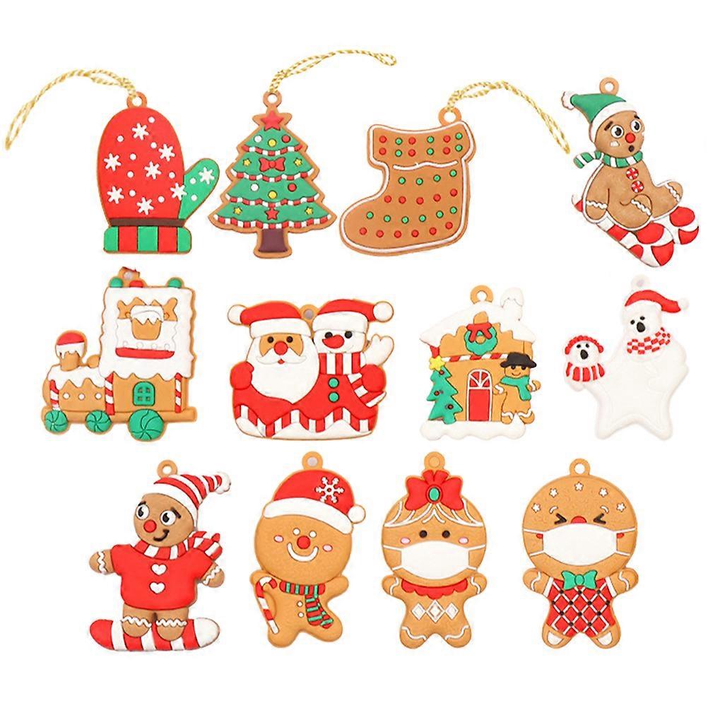 Miniature Gingerbread Ornaments Festive Decor PVC Material Christmas Party Supplies Home Decoration 7.00X4.00X0.20cm 12Pcs