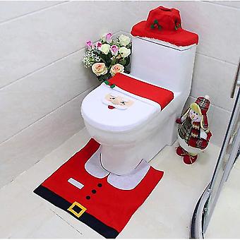 Bathroom Easter Decorations Santa Claus Bath Mat Toilet Seat Cover, Christmas Novelty Lid Seat Cover Water Tank Non-slip Rug Warmer Toilet Cushion