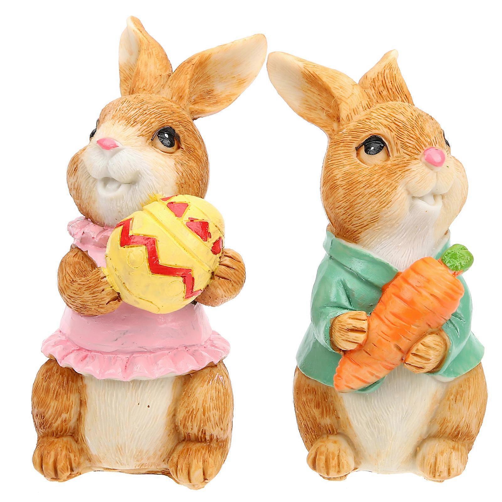 Resin Animal Decor 4 Pcs Bunny Sculpture Cartoon Style Ornament Ideal For Garden Pond Enthusiasts Assorted Color