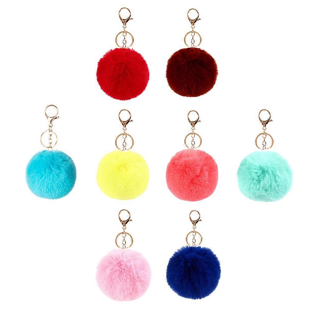 Keychain Decorations Hair Ball Keyring Pendant Assorted Color 15x8cm Faux Material 8Pcs
