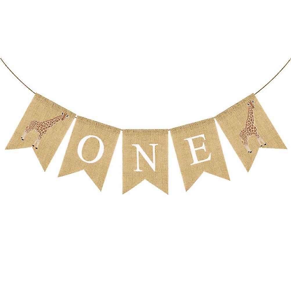 Linen Banner for Baby Giraffe First Birthday Party Decoration 2Pcs